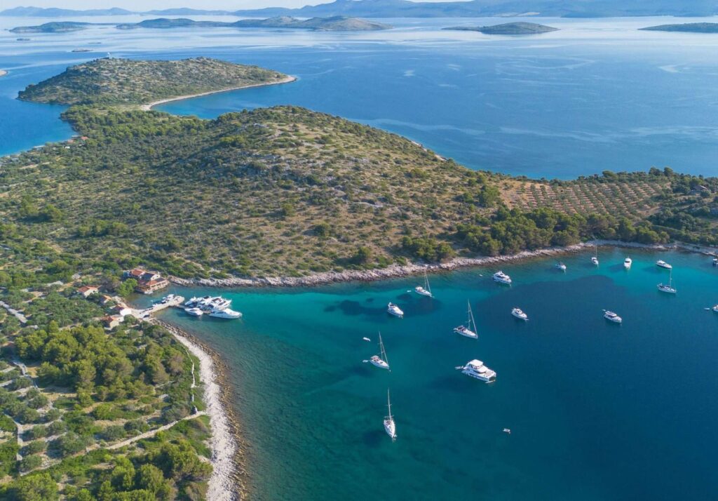 Es ist ein ganz besonderer Platz in der Sabuni Bucht auf der Insel Žut. „Sabuni“ bedeutet soviel wie Sand, und dieser Sand sorgt für das einzigartige Türkis des Meers vor der Konoba.