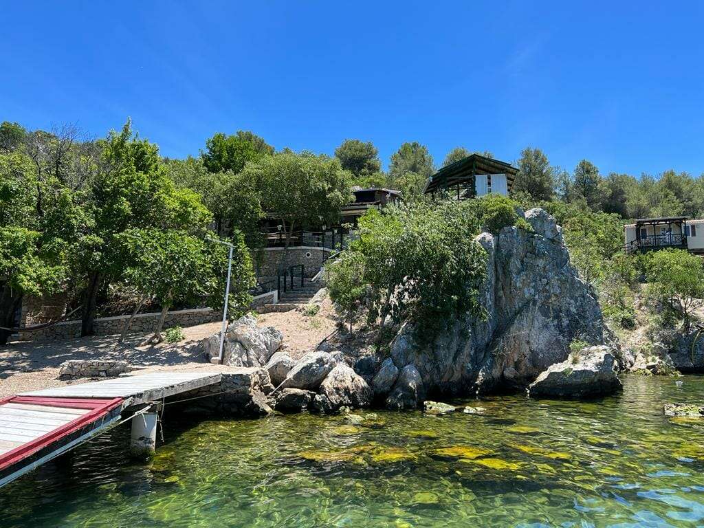 Die Konoba ist in den Hang neben dem Fluss gebaut. Die Lage sei sehr idyllisch, das Preis-Leistungsverhältnis in Ordnung. Das Essen reichlich und darüber hinaus sehr gut.